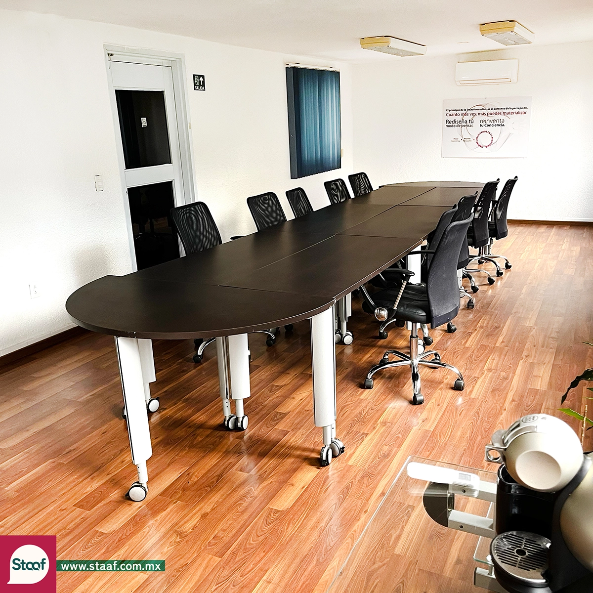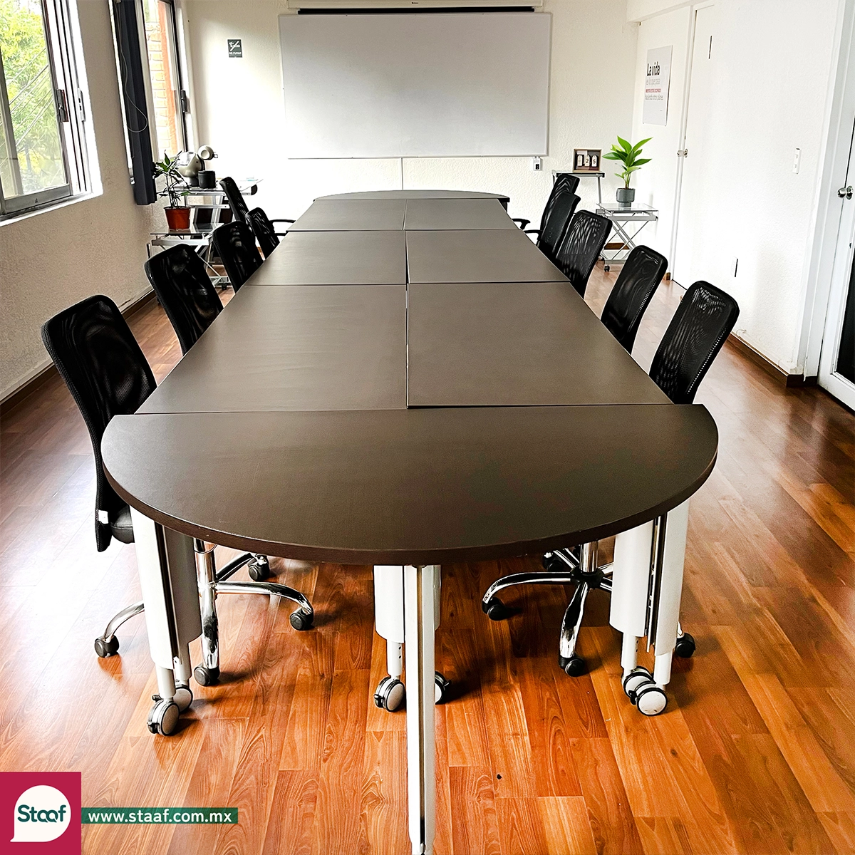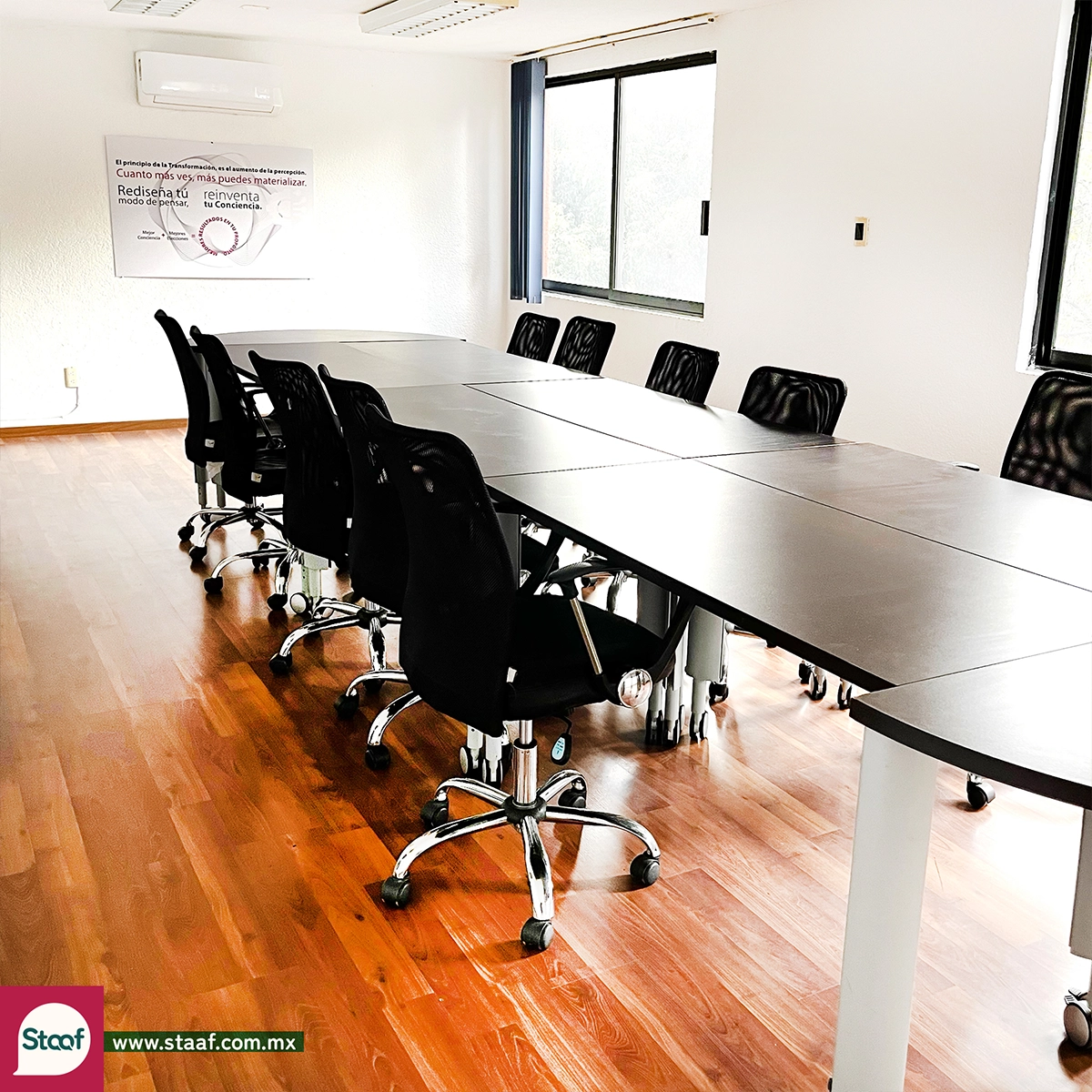 Solo necesitarás tu laptop, de lo demás nos encargamos nosotros. Nuestra sala de juntas modular hará del espacio justo lo que tu necesitas, con todos los servicios y herramientas necesarias para que tu exposición sea profesional.